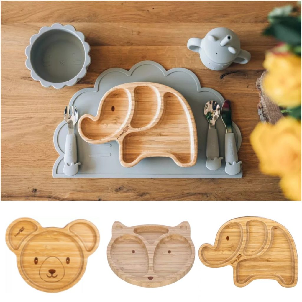 minique: Ebben a zöldség- és gyümölcsadagolásban segíthet egy rekeszes bambusz tányér, amely nemcsak esztétikusan választja szét az ételeket, hanem játékosan is bevonja a kicsiket az egészséges étkezésbe. Például lehet családi szabály az, hogy a róka egyik pofijába mindig színes zöldségek kerülnek! A vidám formájú természetes anyagból nagyobb élvezet a színpompás vitaminforrások, változatos tápanyagok elfogyasztása.