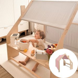 Ez a skandináv stílusú, fából készült játszóház varázslatos kuckót teremt a gyerekszobában, baldachinnal (rózsaszín, kék vagy fehér) vagy natúr fa változatban. Könnyen összeszerelhető, stabil és biztonságos, így tökéletes bázis szerepjátékhoz, kuckózáshoz, meséhez vagy pihenéshez.
