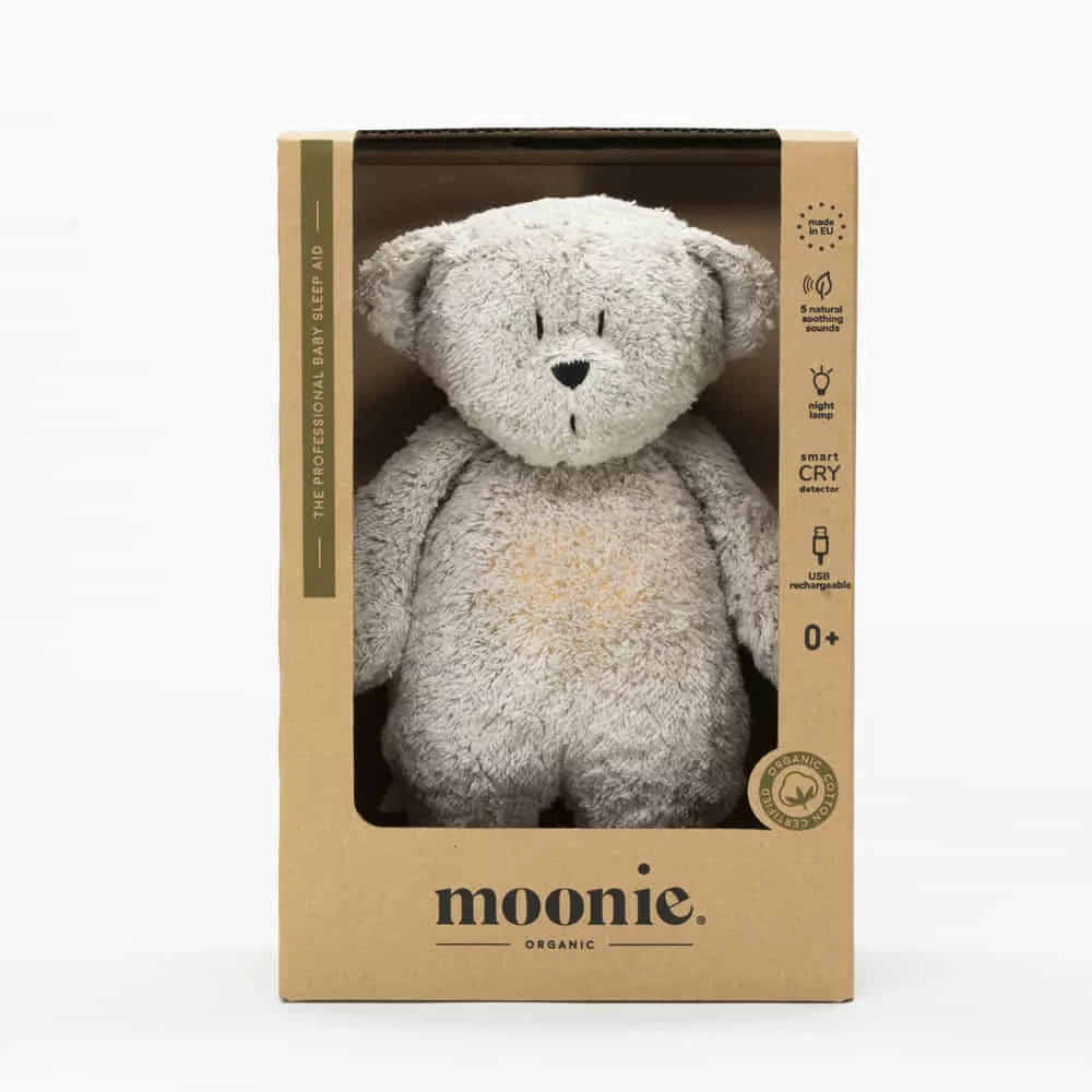 A MOONIE 2.0 alvássegítő maci a kisbabák nyugodt alvásának legújabb generációja. A puha, bájos formájú alvótárs éjszakai fényként működik, s mellette nyugtató hangokkal és altatódallal segíti a babát az elalvásban.