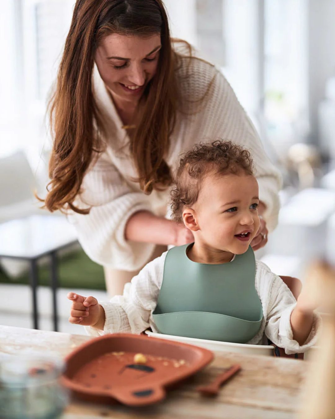 Állítható nagyságú szilikon előke, mely mosogatógépben is mosható és egy praktikus gyűjtótálcával van ellátva, így nem engedi, hogy az ételfalatok a gyermeked ölébe vagy a földre pottyanjanak.